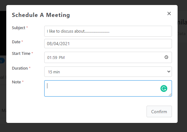 Step 6 - Schedule the meeting. Add subject, Choose date/ Start Time & Duration. Then add notes.